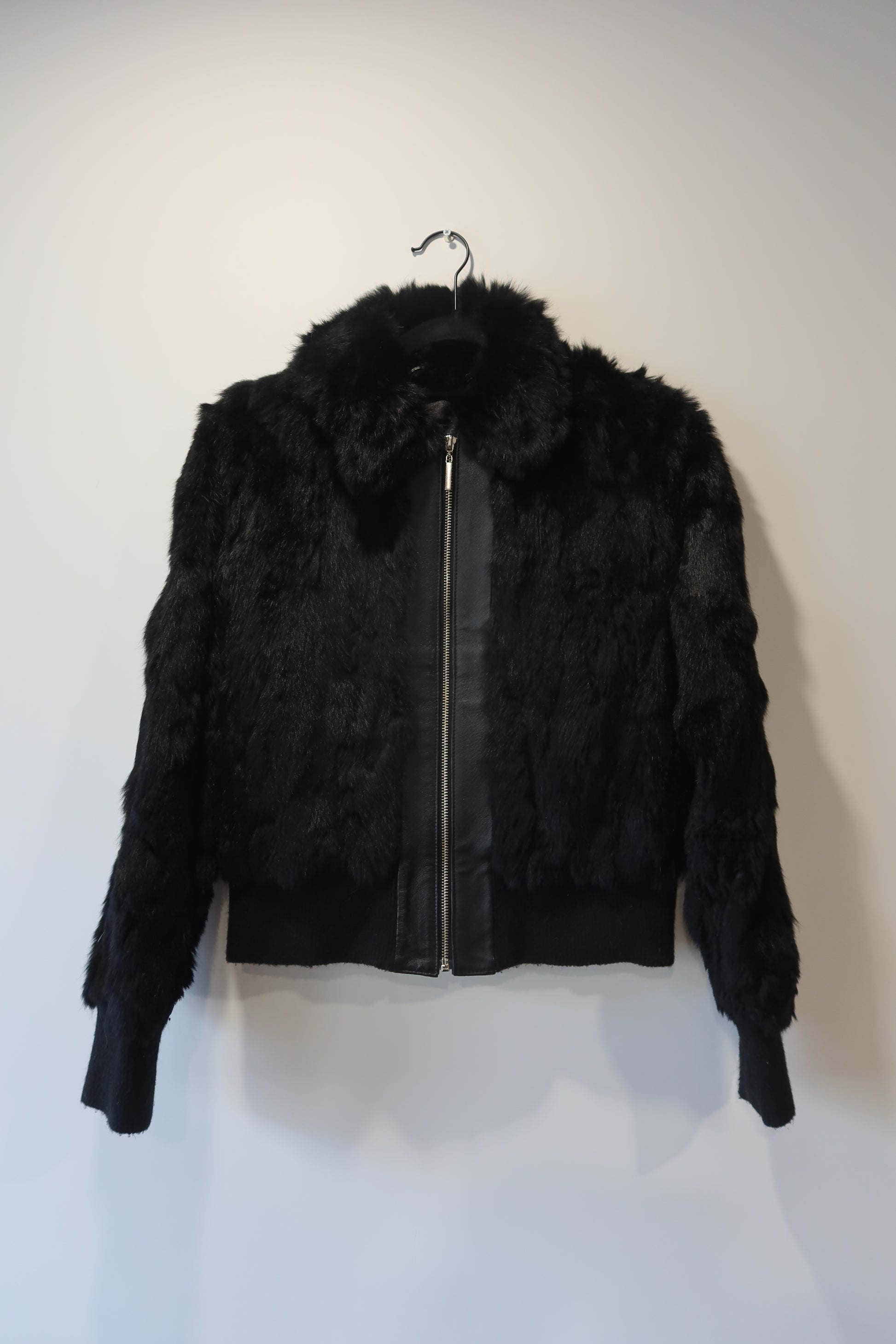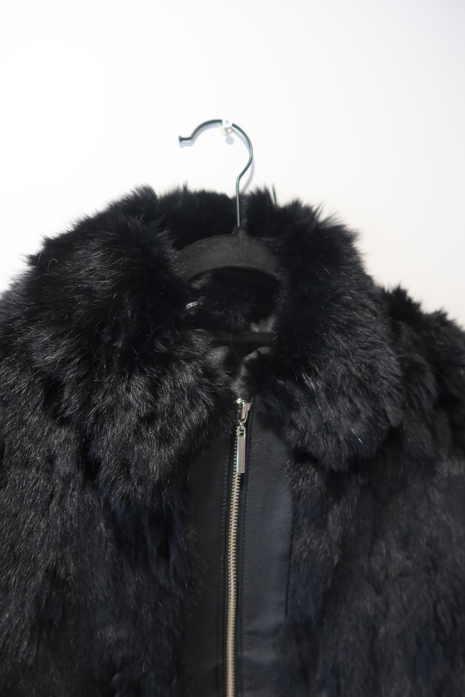 Veste courte en fourrure véritable noire manches longues et resserrée à la taille. Col à revers. Doublure intérieure ton sur ton. Fermeture éclair.